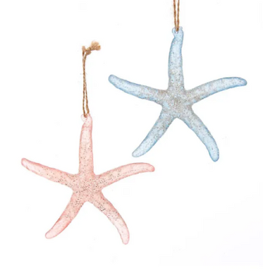 KURT ADLER SET OF 2 ACRYLIC PINK & BLUE STARFISH NAUTICAL COASTAL XMAS ORNAMENTs