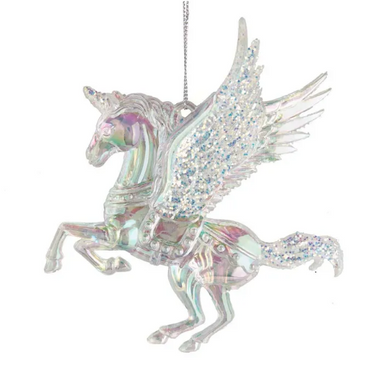 KURT ADLER IRIDESCENT ACRYLIC UNICORN w/WINGS PEGASUS UNICORN CHRISTMAS ORNAMENT