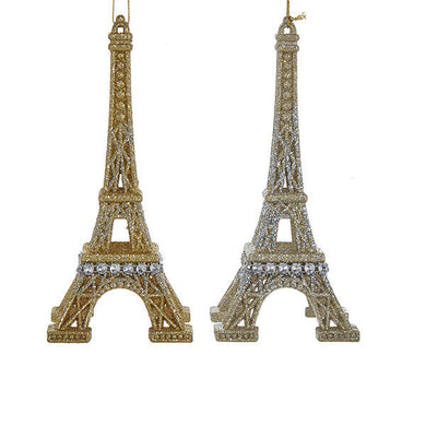 KURT ADLER SET OF 2 ACRYLIC 6.2" GOLD/SIVER EIFFEL TOWER XMAS ORNAMENTS T2107