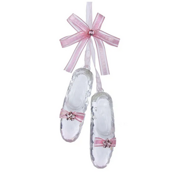 KURT ADLER ACRYLIC PINK BALLET SLIPPERS w/PINK BOW & JEWEL XMAS ORNAMENT D1345