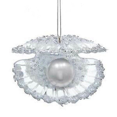 KURT ADLER 2.5" CLEAR/SILVER ACRYLIC SEASHELL w/ PEARL NAUTICAL XMAS ORNAMENT