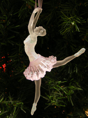 KURT ADLER ACRYLIC PINK BALLERINA w/IRIDESCENT GLITTER XMAS ORNAMENT STYLE A