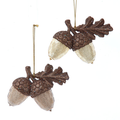 KURT ADLER SET OF 2 BROWN/GOLD GLITTER 2.75" ACRYLIC ACORN XMAS ORNAMENTS T3532