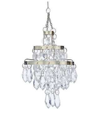 KURT ADLER 2.75" CLEAR ACRYLIC BEADED METAL CHANDELIER CHRISTMAS ORNAMENT D0891