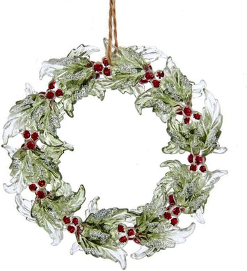 KURT ADLER 5.2" ACRYLIC BIRCH BERRY WREATH w/ GLITTER CHRISTMAS ORNAMENT T2889