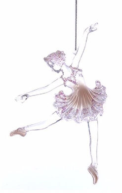 KURT ADLER CLEAR ACRYLIC BALLET GIRL w/WHITE GLITTER DRESS XMAS ORNAMENT STYLE A