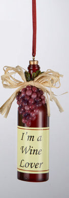 KURT ADLER "I'M A WINE LOVER" ACRYLIC RED WINE BOTTLE CHRISTMAS ORNAMENT C8085
