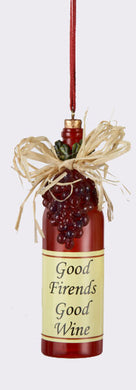 KURT ADLER "GOOD FRIENDS GOOD WINE" ACRYLIC RED WINE BOTTLE XMAS ORNAMENT C8085