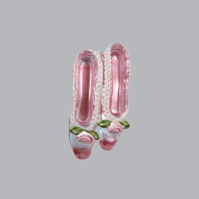 KURT ADLER ACRYLIC PINK BALLET SLIPPERS w/GREEN BOW & FLOWER CHRISTMAS ORNAMENT
