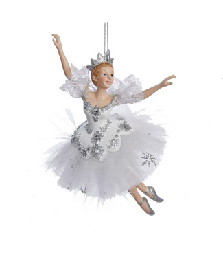 KURT ADLER 6.75" RESIN SILVER & WHITE SNOW QUEEN BALLERINA XMAS ORNAMENT C8574