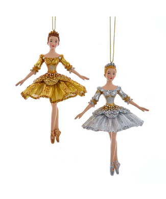 KURT ADLER SET OF 2 RESIN 5.5" OMBRE GOLD/SILVER BALLERINA XMAS ORNAMENTS E0801