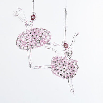 KURT ADLER SET OF 2 PINK ACRYLIC BALLERINA GIRLS DANCE CHRISTMAS ORNAMENTS