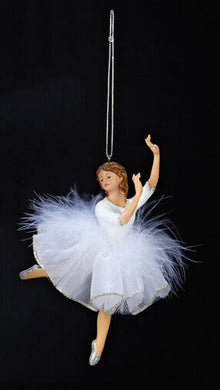 KSA WINTER WONDERLAND BALLERINA XMAS ORNAMENT w/MARABOU, CHIFFON & TULLE DRESS