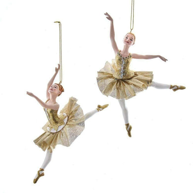 KURT ADLER SET OF 2 METALLIC GOLD BALLERINAS IN ARABESQUE POSE XMAS ORNAMENTS