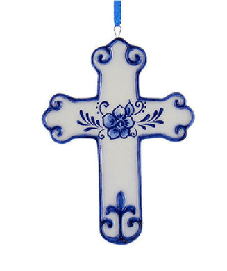 KURT S. ADLER PORCELAIN DELFT BLUE CROSS CHRISTMAS ORNAMENT STYLE B