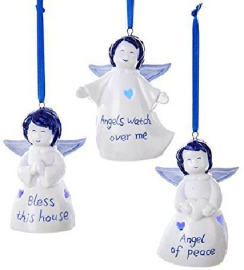 KURT ADLER SET OF 3 PORCELAIN LED DELFT BLUE ANGELS WITH MESSAGES XMAS ORNAMENTS