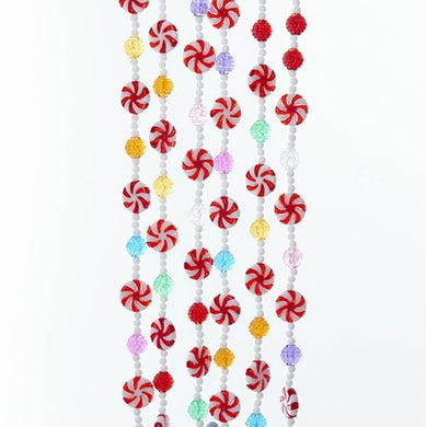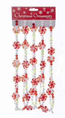 KURT ADLER 9' ACRYLIC RED/GREEN/WHITE BEADED GARLAND w/ PEPPERMINT SWIRL CANDY