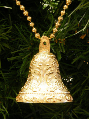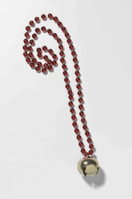 BRASS FINISHED SLEIGH BELL WITH RED BEADED GARLAND ADULT HOLIDAY NECKLACE