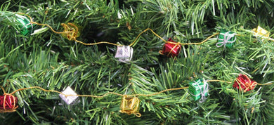 TRADITIONS VINTAGE 3ft MINIATURE METALLIC FOIL GIFT WRAP PACKAGES MINI GARLAND