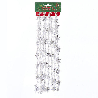 KURT S. ADLER 9' ACRYLIC IRIDESCENT SILVER STAR w/DIAMOND TWIST BEAD GARLAND