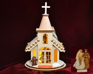 GINGER COTTAGES WEDDING CHAPEL w/BRIDE & GROOM CHRISTMAS ORNAMENT USA MADE GC102