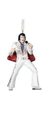 KSA ELVIS IN WHITE JUMPSUIT w/RED GLITTERY CAPE ELVIS PRESLEY XMAS ORNAMENT