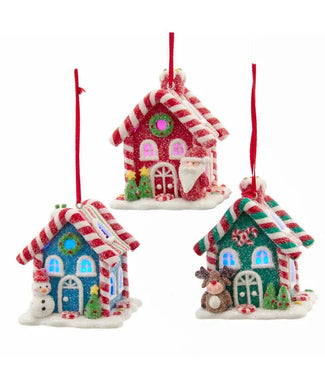 KSA SET OF 3 CLAYDOUGH B/O LIGHTED LED GINGERBREAD HOUSE XMAS ORNAMENTS D3866