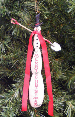 KSA 1990's VINTAGE FOLK ART PENCIL SNOWMAN w/TOP HAT & SHOVEL XMAS ORNAMENT