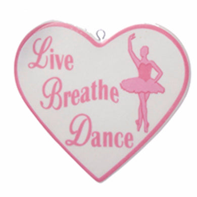 KSA PORCELAIN BALLET HEART CHRISTMAS HOLIDAY ORNAMENT "LIVE BREATHE DANCE"