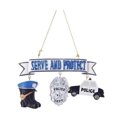 KSA 4.25" HAND PAINTED "SERVE AND PROTECT" POLICEMAN DANGLE CHRISTMAS ORNAMENT