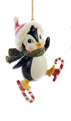 KSA SKATING PENGUIN w/CANDY CANE SKATES & GREEN /RED SCARF XMAS ORNAMENT STYLE 2