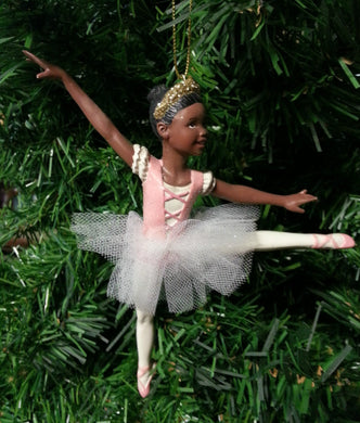 KSA HAND PAINTED AFRICAN AMERICAN BALLERINA ON POINTE BALLET XMAS ORNAMENT A