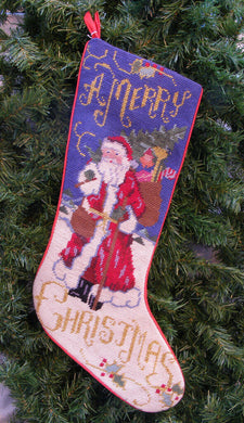 KSA SANTA CLAUS w/ SACK OF GIFTS NEEDLEPOINT STOCKING