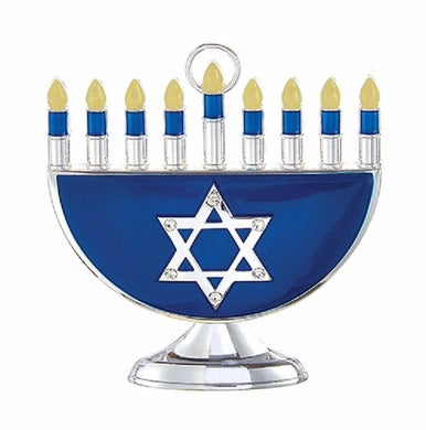 KSA SILVER PLATED MENORAH w/ENAMEL & SIX EUROPEAN CRYSTALS HANUKKAH ORNAMENT