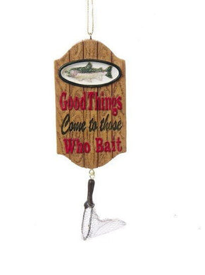 KSA RESIN LODGE FISHING PLAQUE ORNAMENT "GOOD THINGS COME TO THOSE WHO BAIT"