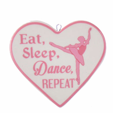 KSA PORCELAIN BALLET HEART CHRISTMAS HOLIDAY ORNAMENT "EAT, SLEEP, DANCE..."