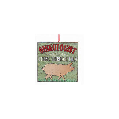 KSA "OINKOLOGIST I THINK, ..." FARM ANIMAL THEME WOOD PLAQUE XMAS ORNAMENT