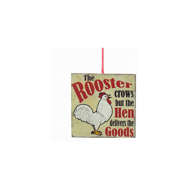 KSA "THE ROOSTER CROWS BUT ..." FARM ANIMAL THEME WOOD PLAQUE XMAS ORNAMENT