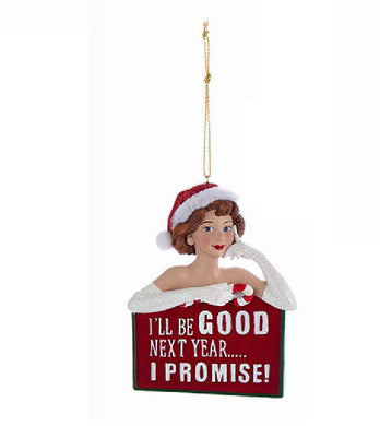 KSA NAUGHTY OR NICE LADIES "I'LL BE GOOD NEXT YEAR.....I PROMISE!" XMAS ORNAMENT