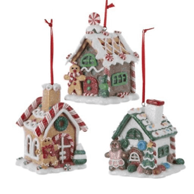 KSA SET OF 3 CLAYDOUGH B/O LIGHTED LED GINGERBREAD HOUSE XMAS ORNAMENTS D3866