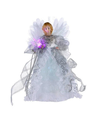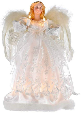KURT ADLER 10 LIGHT WHITE & SILVER ANGEL CHRISTMAS TREE TOPPER DECORATION