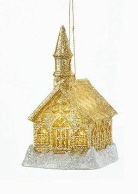 KURT ADLER LIGHT GOLD & SILVER GLITTER LED CHURCH CHRISTMAS ORNAMENT STYLE A