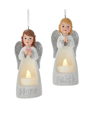 KURT ADLER SET OF 2 HOPE/FAITH 4.7.5" B/O WHT/SIL ANGEL w/LIGHT XMAS ORNAMENTS