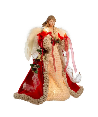 KURT ADLER 16" UL 10-LIGHT RED & IVORY ANGEL CHRISTMAS TREE TOPPER UL2218