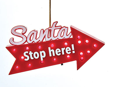 KURT ADLER BATTERY OPERATED LED "SANTA STOP HERE!" BLINKING LIGHT-UP ORNAMENT