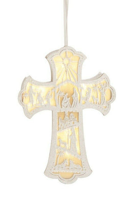 GALLERIE II WHITE CROSS LIGHTED CARDBOARD CUT-OUT SHADOW BOX NATIVITY ORNAMENT