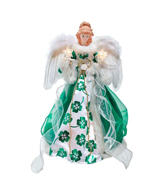 KURT ADLER 10 LIGHT WHITE & GREEN IRISH ANGEL XMAS TREE TOPPER DECORATION UL2226