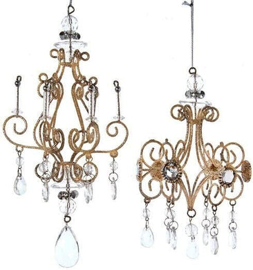 KURT ADLER SET OF 2 LIGHT GOLD GLITTERED METAL CHANDELIER XMAS ORNAMENTS D4164