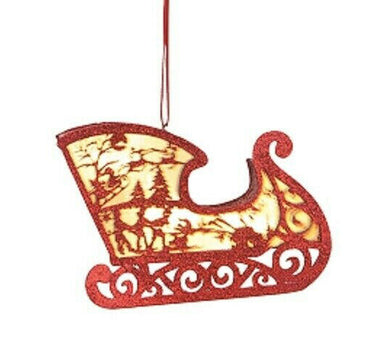 GALLERIE II RED SLEIGH LED LIGHTED CARDBOARD CUT-OUT SHADOW BOX XMAS ORNAMENT