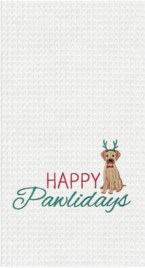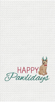 GALLERIE II "HAPPY PAWLIDAYS" DOG TOWEL CHRISTMAS HOLIDAY DECOR